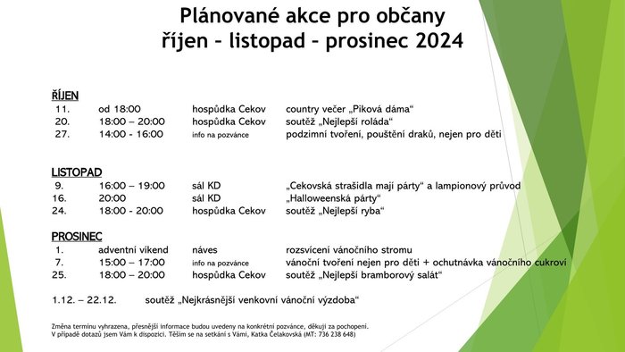 O obci > Aktuality > Plánované akce říjen až prosinec