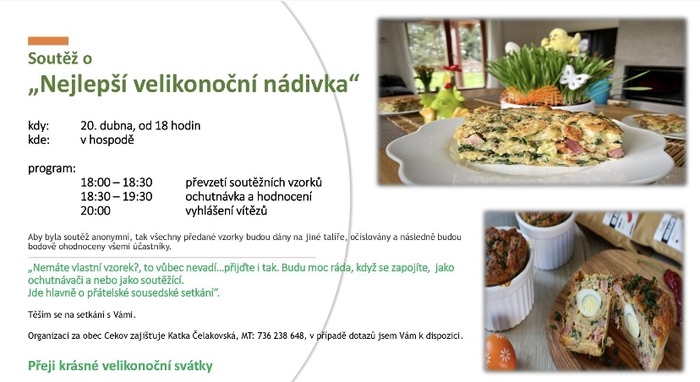 Soutěž o nejlepší velikonoční nádivku 20.4.2025 od 18.00 hodin